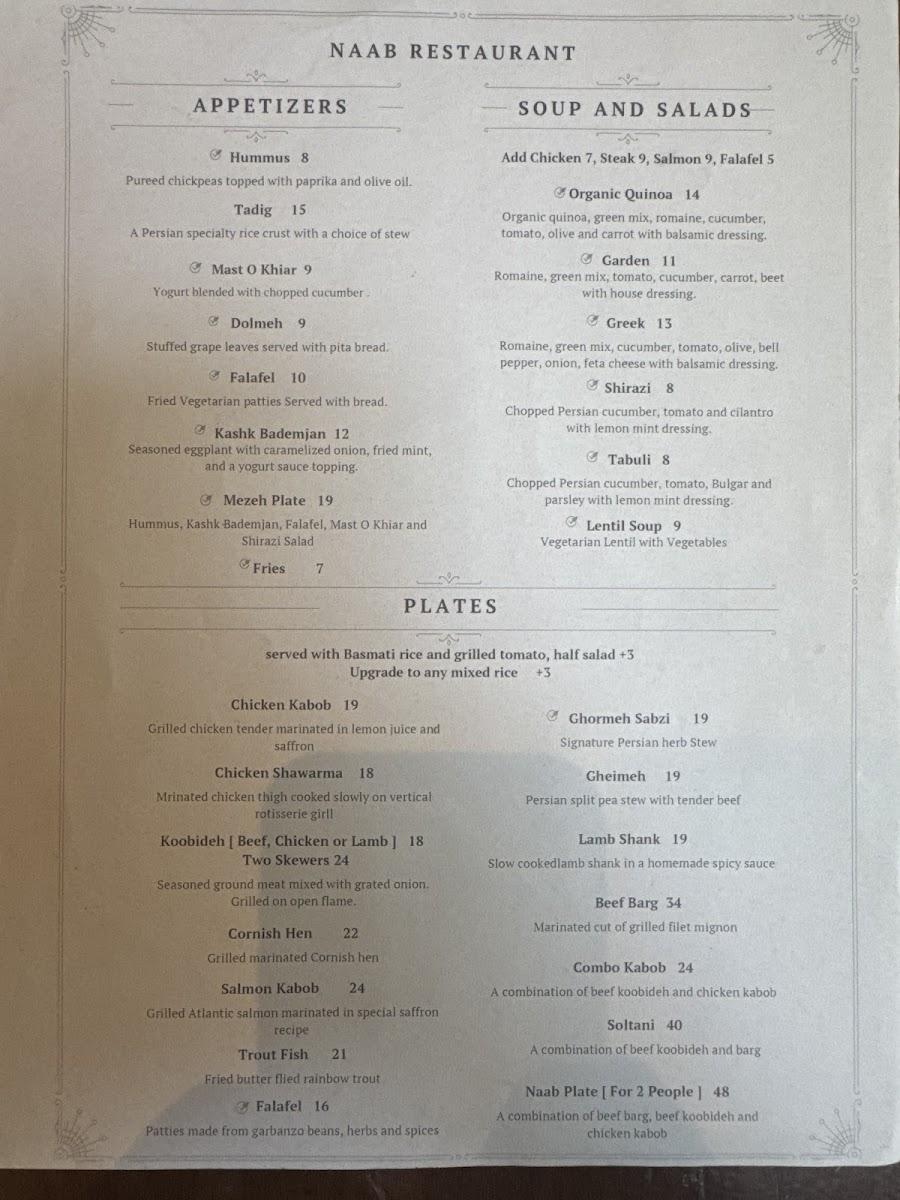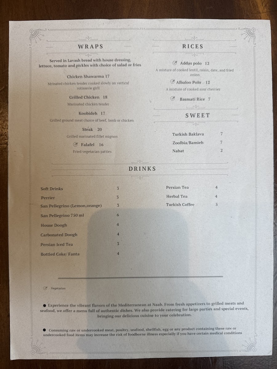 Patrons rave about the fresh ingredients, beautiful presentation, and accommodating service. The cozy atmosphere makes it a perfect spot for friends and family gatherings. Whether you’re a Mediterranean fan or a first-timer, Naab Mediterranean offers an unforgettable dining experience you won’t want to miss.